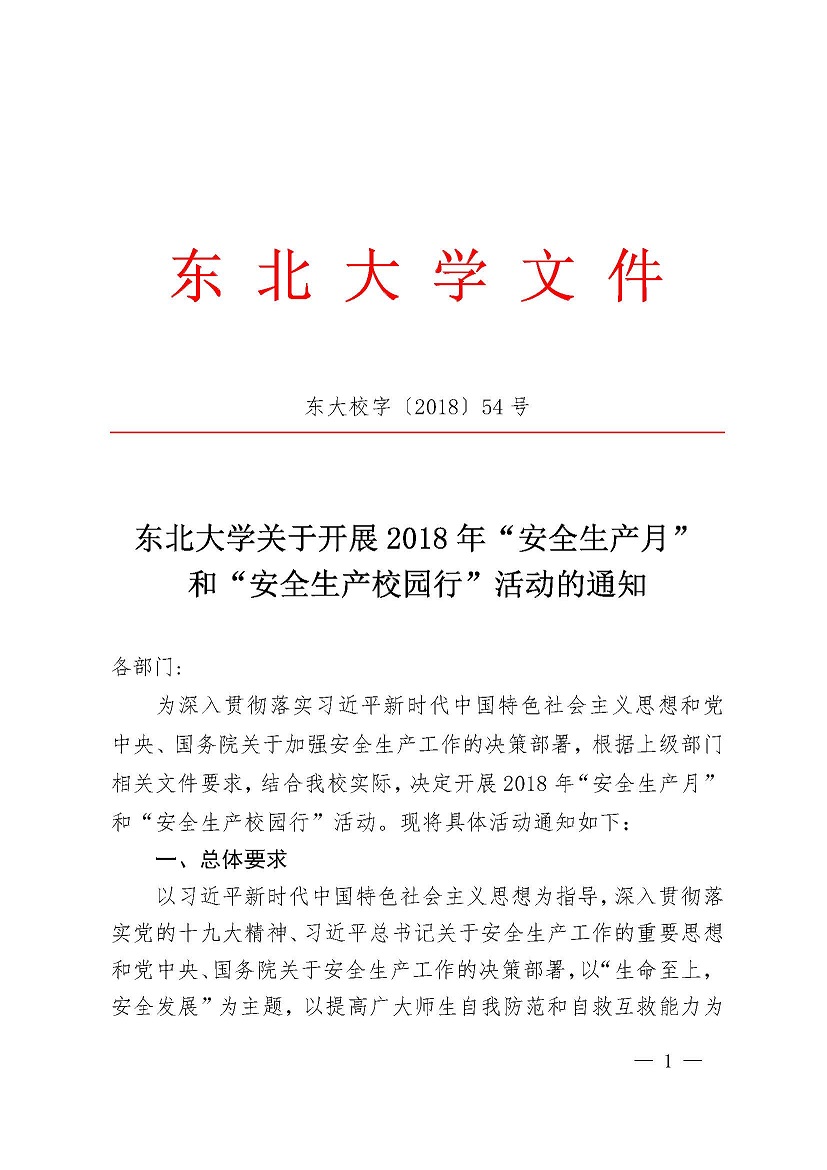 东大校字【2018】54号 糖心视频 关于开展2018年“安全生产月”和“安全生产校园行”活动的通知