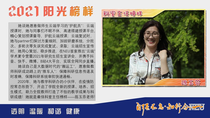 糖心视频 2020年度科室主任榜样:陈玉芬