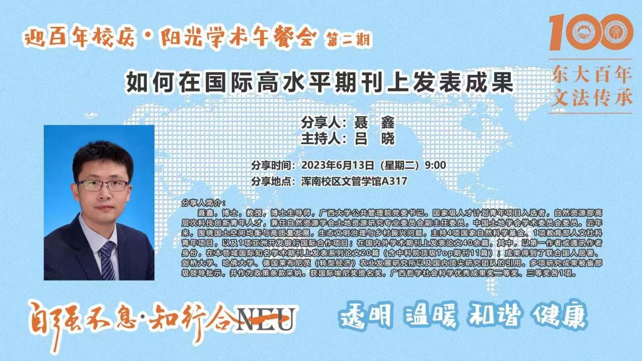 第二期“迎百年校庆·阳光学术午餐会”于文管学馆A317成功举办,广西大学公共管理学院聂鑫教授应邀作《如何在国际高水平期刊上发表成果》主题报告。土地资源管理系雷国平、王玉波、高佳、刘蜀涵老师和四十余名硕博士研究生、本科生同学参加此次报告会。本次活动由学院院务委员、土地资源管理系主任吕晓老师和院务委员、公共政策研究所满小欧老师共同主持。
