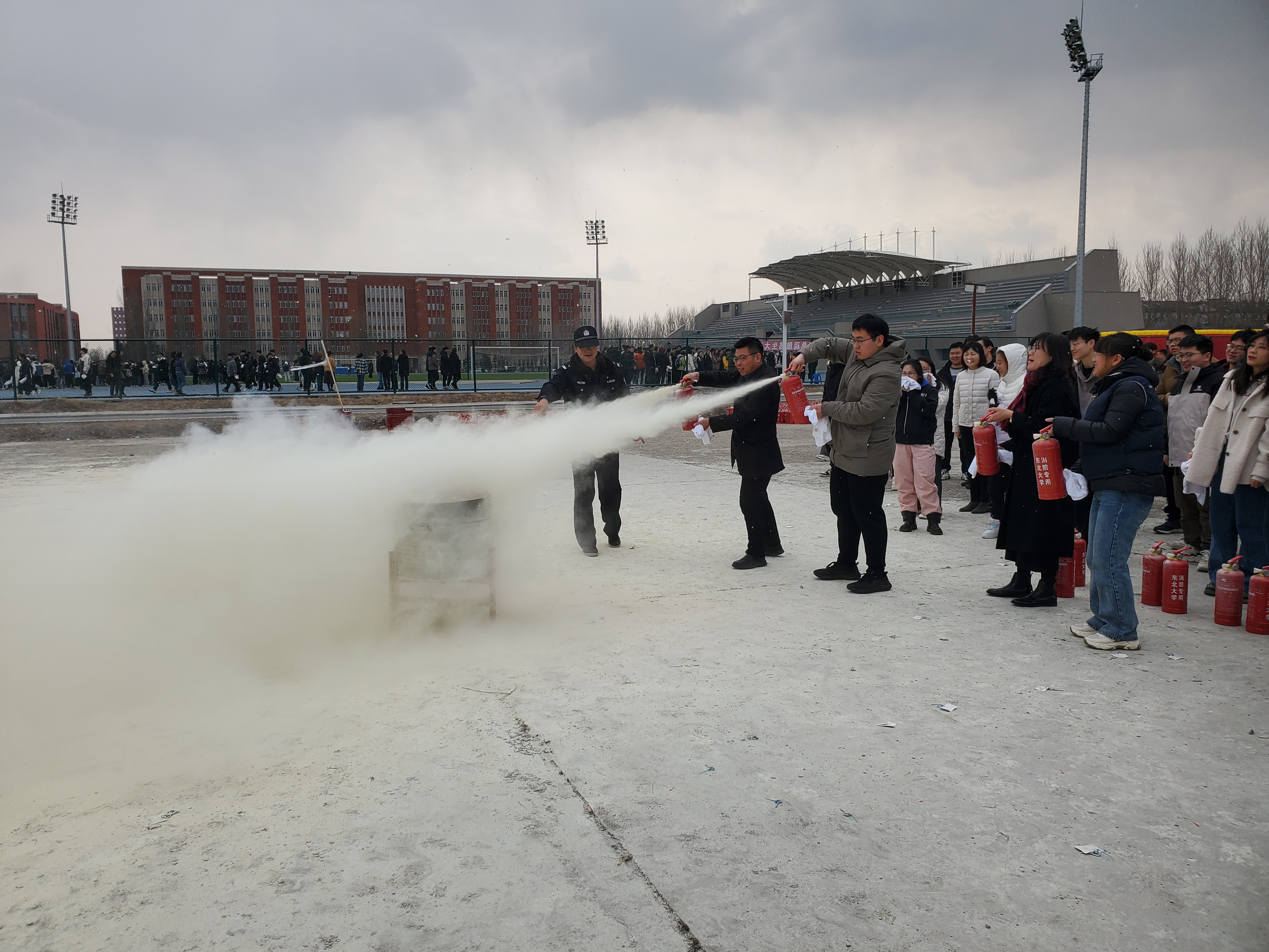 随后,公安处老师讲解灭火器与墙壁消火栓使用方法和灭火技巧,师生依次使用灭火器,进行灭火实战演练。