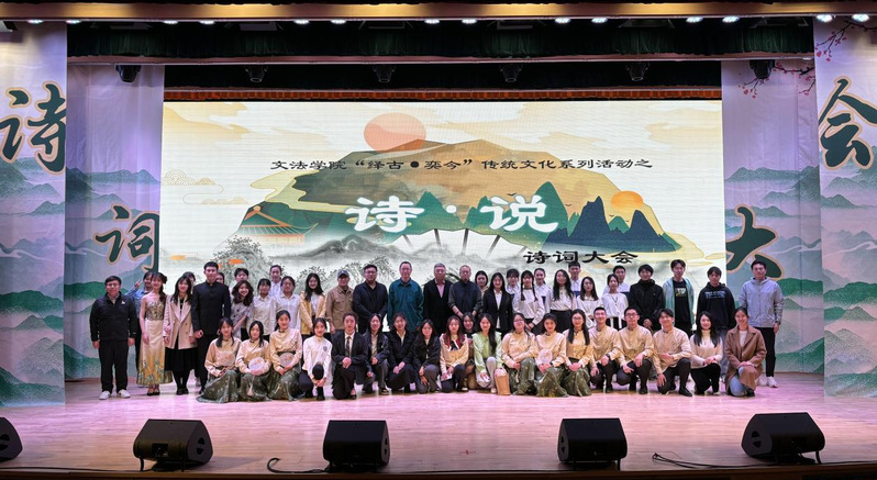 经过初赛选拔,共有8支队伍进入到最终决赛环节。决赛现场分为“兵贵神速”、“百舸争流”与“飞花令”三个环节,每个环节结束均由专业评委进行点评指导。从知识问答、百人团互动到主题诗词对弈展示,同时结合学院95周年院庆,将传统文化融入校史校情元素,全面展现文法学子的诗词底蕴与人文素养。