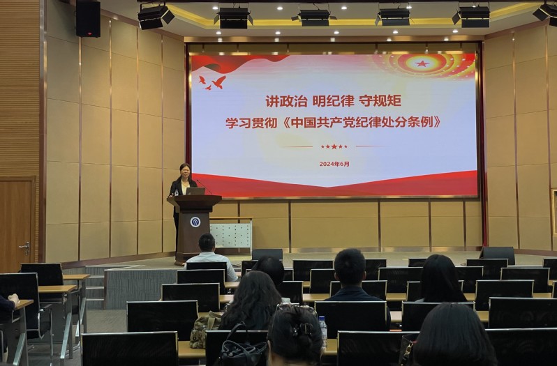 党委在浑南校区文管学馆B230会议室开展党纪学习教育专题宣讲。校党纪学习教育宣讲团副团长、校纪委副书记、纪委办公室[监察室]主任、马克思主义学院教授王立慧受邀以“讲政治 明纪律 守规矩——学习贯彻《中国共产党纪律处分条例》”为题进行专题讲座。学院党委书记隋永强主持宣讲活动,学院全体教职工参加学习。