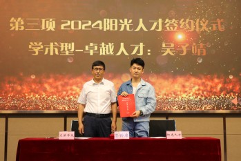 会议第三项,2024阳光人才签约仪式。杜宝贵依次与学术型卓越人才吴子靖、学术型攀登人才刘蜀涵、学术型领军人才张晓杰签署协议书。