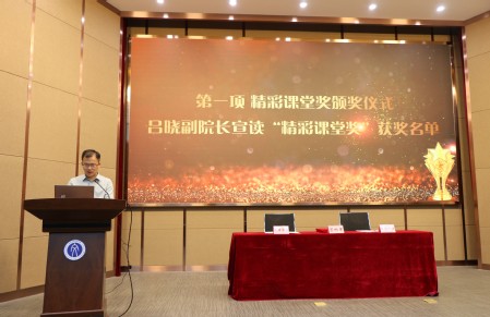 会议第一项,“精彩课堂奖”颁奖。副院长吕晓宣读“精彩课堂奖”文件,王淼、赵进华、刘馨蕊、杨丰一四位老师荣获本科生“精彩课堂奖”,高佳、李丹、王作宝、满小欧四位老师荣获研究生“精彩课堂奖”,党委书记隋永强、院长杜宝贵为获奖教师颁奖。土地资源管理系主任高佳副教授作为获奖教师代表发言。